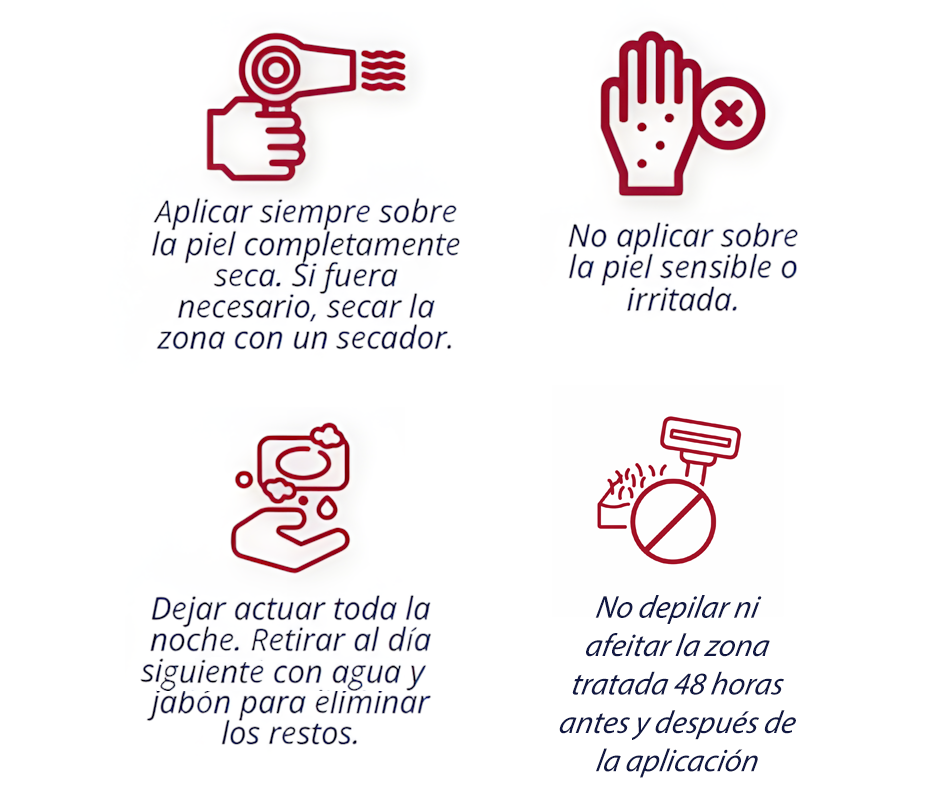 - No depilar ni afeitar la zona tratada 48 horas antes y después de la aplicación.